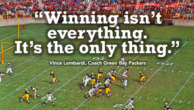 While many interpret Lombardi’s saying as a ‘win at all costs’ philosophy – which can seem a bit extreme – his players often noted that his comment connoted winning as a mindset, not an outcome.  That is, having a focused, winning attitude is the key to success.