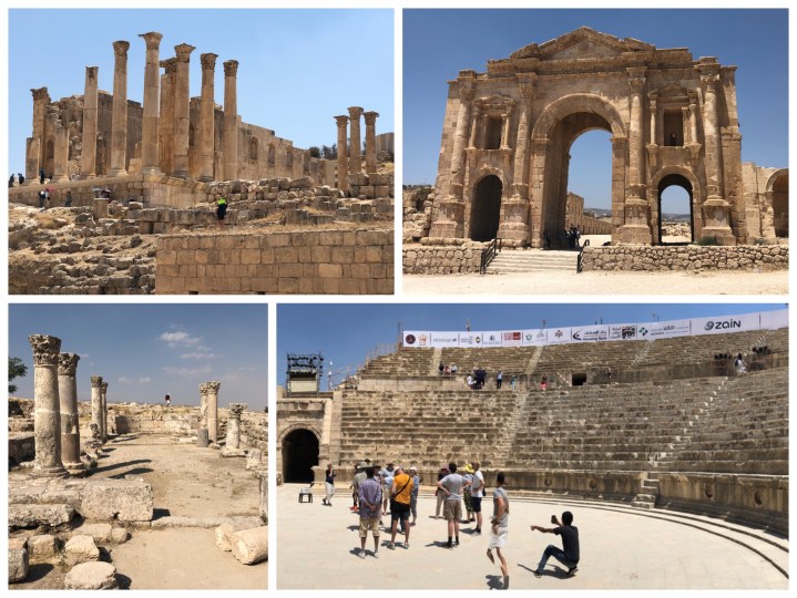 Before this trip, I knew very little about the Kingdom of Jordan and had never heard anything about the ancient Roman city of Jerash. Not as big as Pompeii in Italy or as grand as Ephesus in Turkey – two other large Roman cities we have visited – Jerash is a terrifically preserved city with a magnificent triumphal Arch named for Hadrian, a large Temple to Zeus, an oval-shaped forum, a medium sized Roman amphitheater, and an ancient hippodrome that stills features chariot races on Wednesday nights!