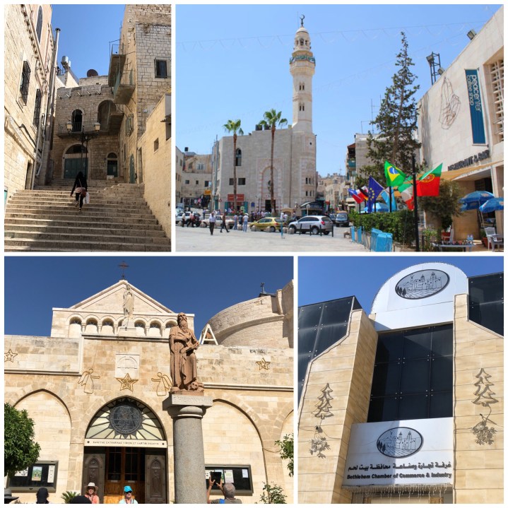 🎄Manger Square is the center of the old city and the main hub for tourists. These pictures show some of the limestone buildings in the area. You can see that there is a minaret towering over the square, as most of Bethlehem’s 29,000 population is Muslim. Still, much of the town’s economy is based on Christian pilgrims and there are Palestinian Christians living here as well.