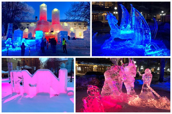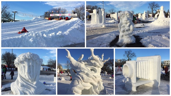 Last night we checked out the amazing ice sculptures on display in our downtown and this weekend we’ll go to see the snow sculpture competition at our State Fairgrounds. What people can carve out of snow & ice blocks is pretty amazing. Last year they even built a 10 story palace of ice. It’s really cool when these are lit up at night.
