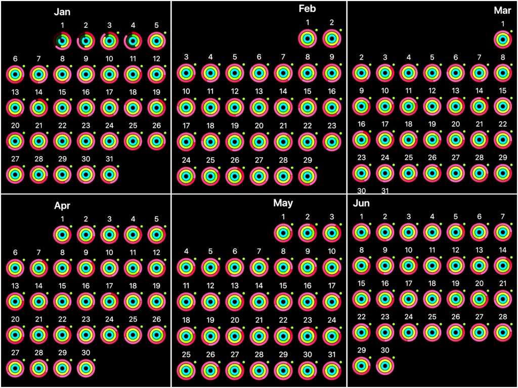 I’m happy with the progress I’ve made in these three areas over the last 6 months and will try to keep ‘on plan’ through the end of the year. It’s inevitable that my streak of closing my Apple Watch fitness rings will come to an end at some point, but I’ll do my best to stretch them as long as I can.