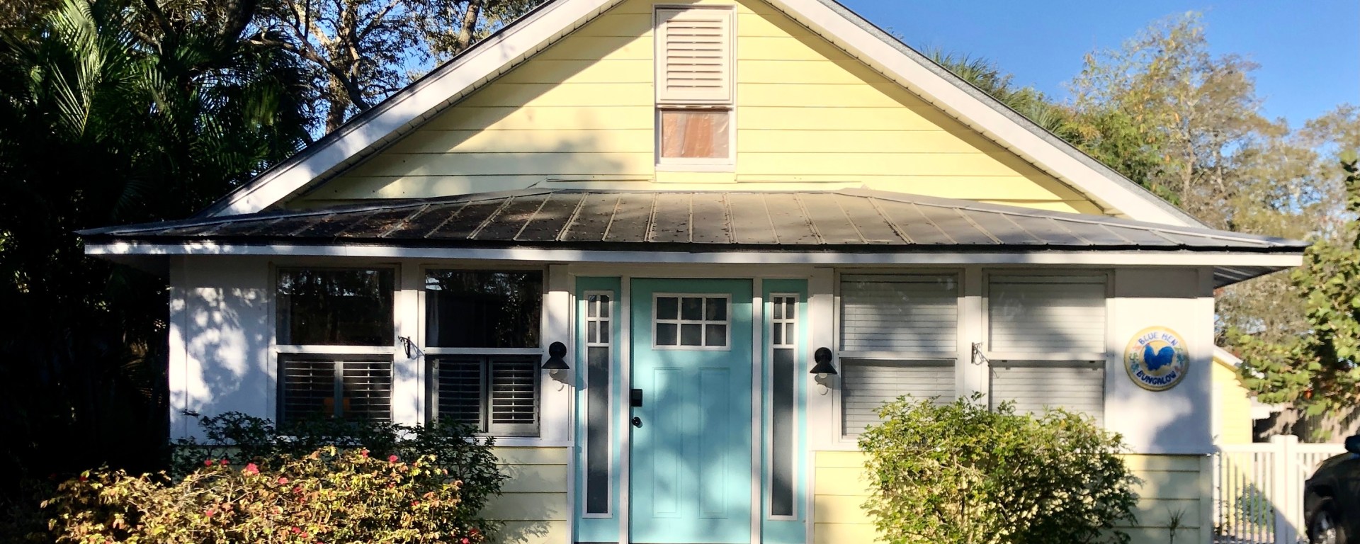When we checked out of the condo we were staying at near Orlando last week and headed to Gulfport FL, we also made a big switch in accommodations. We left the gated & manicured 1,100 suite Hilton Tuscany Village for the causal, one-of-a-kind, Blue Hen Bungalow just off Beach Boulevard (above).