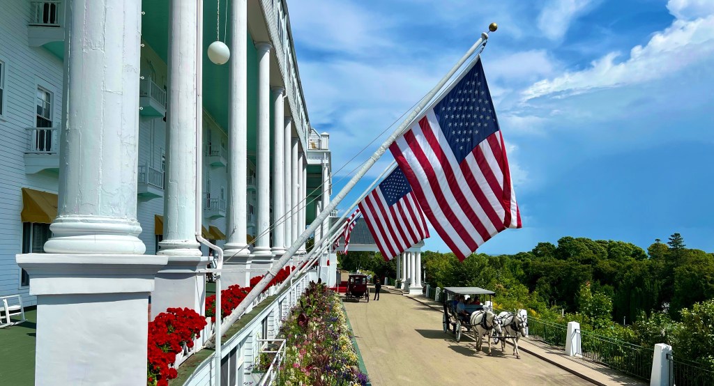 We’ve had a lovely time staying at the Grand Hotel on Mackinac Island this week. It was a terrific place to spend our anniversary and the weather was fantastic. The Victorian island experience here with no cars – only carriages & bicycles to get around – is really enchanting.