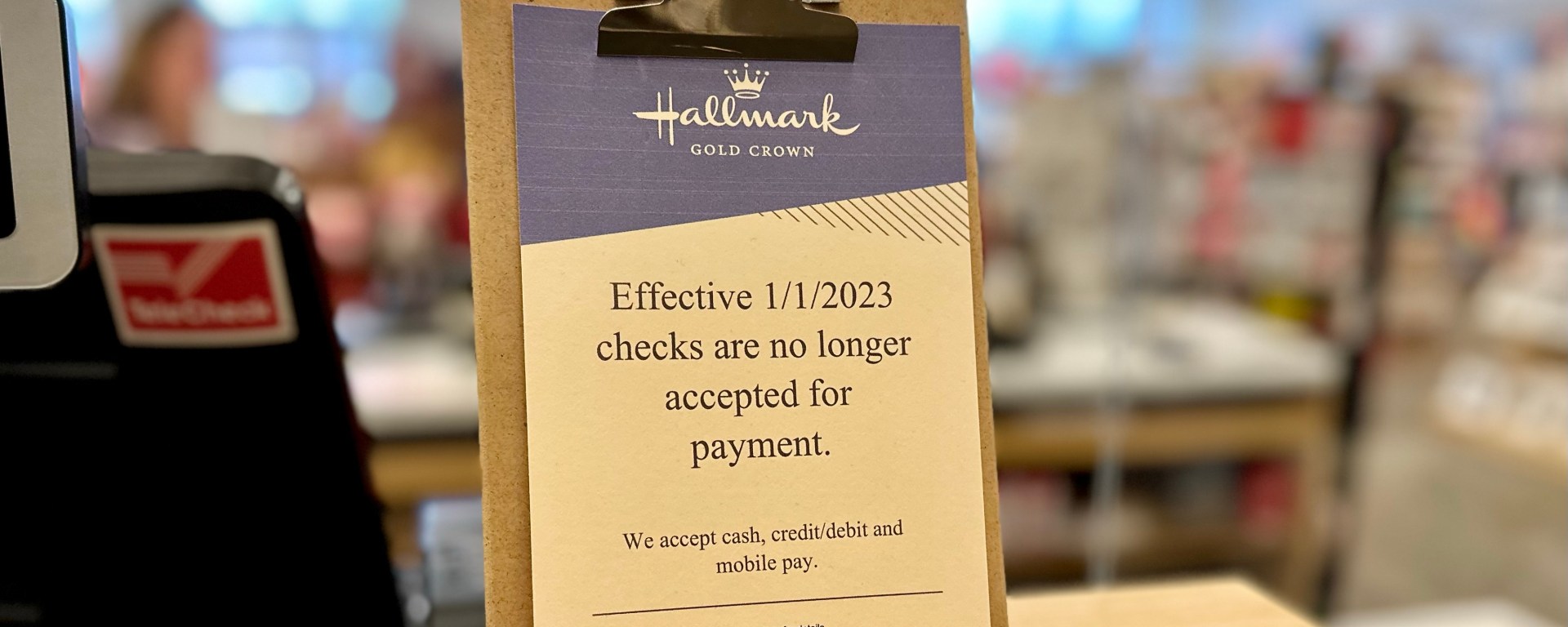 This sign I saw at a Hallmark store reminded me of that today. They aren’t taking paper checks anymore. Wait …what? People are still writing paper checks?