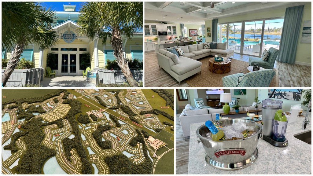 The second issue for us comes from our experience leaving the models and going “off tour”. We went rogue – driving through a open gate into one of the finished neighborhoods in Latitude Margaritaville. There we saw the “real world” side of the development and we were a lot less impressed. Lots were small, yards were unkept, cars/golf carts were parked everywhere, and many folks looked like they had decorated their homes with the kind of plastic accessories they sell in the Walmart garden department. It just looked cheap. And quite crowded.