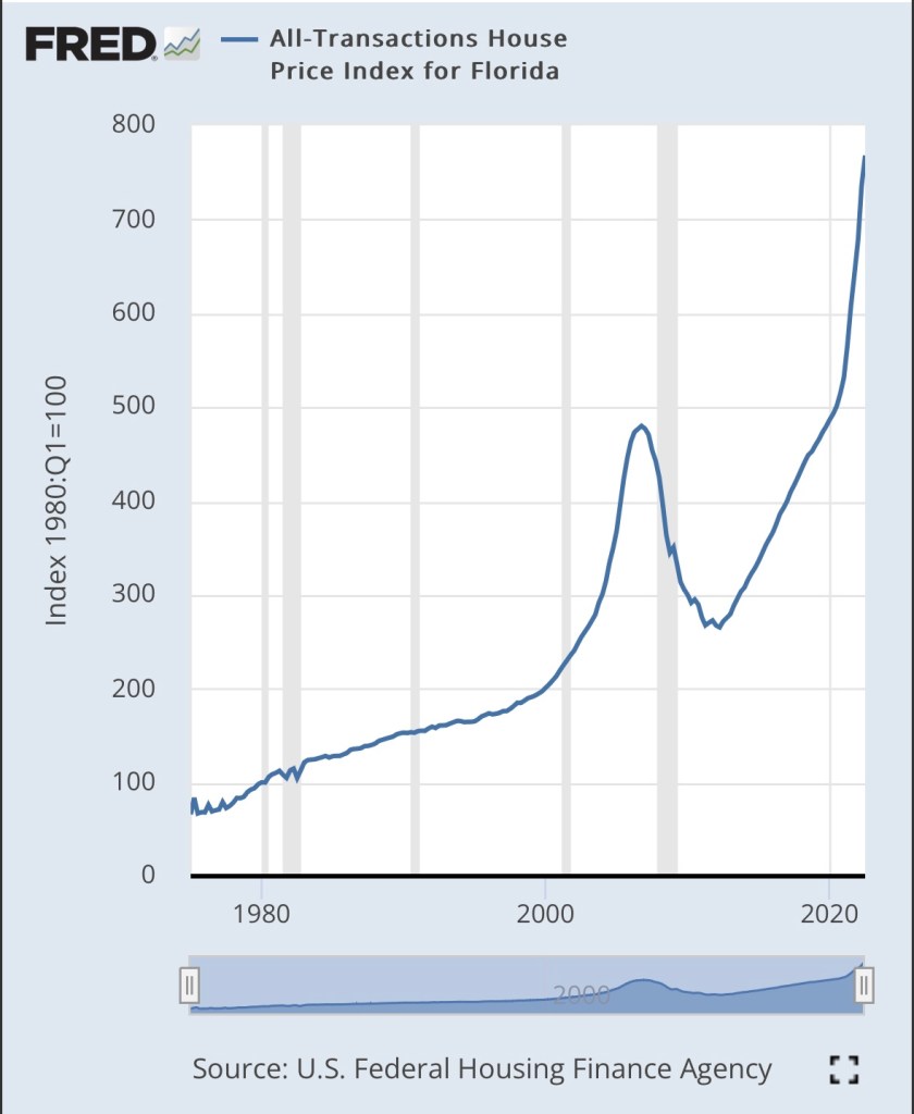 Besides, Florida real estate prices continue to be scary high. Scary, scary, scary high.