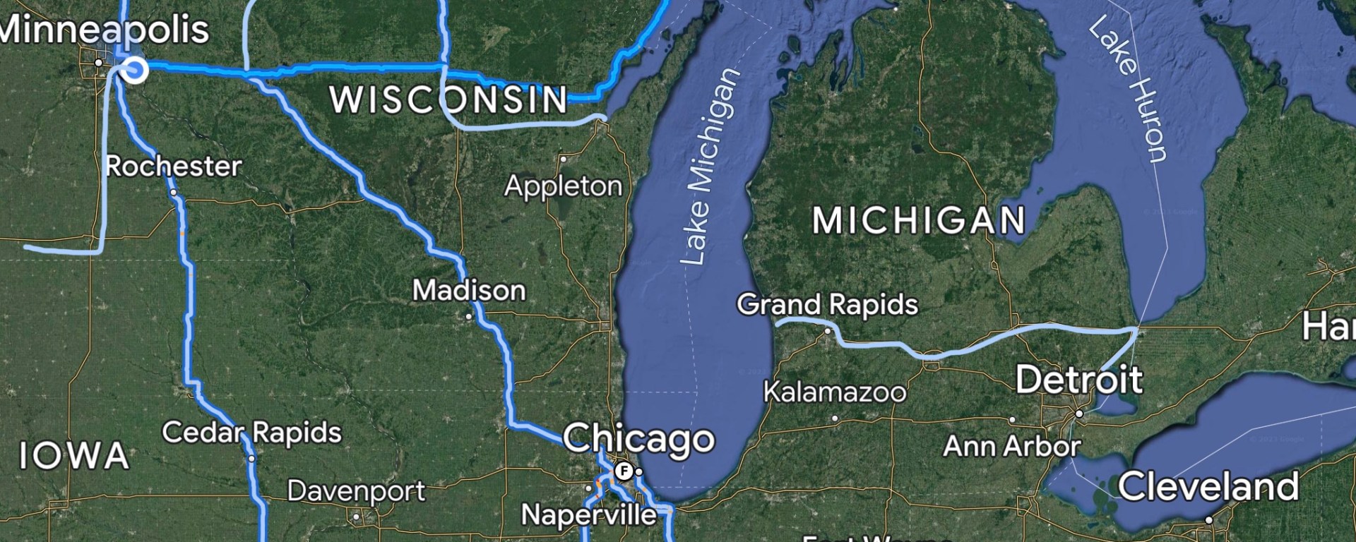 On our way back from Chicago, I was amazed how how much of the Midwest I’ve covered in the last year. It was the eighth overnight road trip I’ve taken in the last 12 months – reaching Chicago, Indianapolis, Detroit, St. Louis, Springfield, Green Bay, Minnesota’s North Shore, and a couple trips through Michigan’s Upper Peninsula. (I also spent a few nights in Columbus, but I flew there for that)