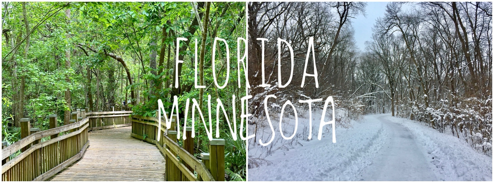 We’re shuffling home to cold Minnesota today from our new vacation place in sunny Celebration FL. We’re heading from a place you can walk through a tropical paradise – sunny & 80-degrees – to a snowy landscape with temperatures in the teens overnight.