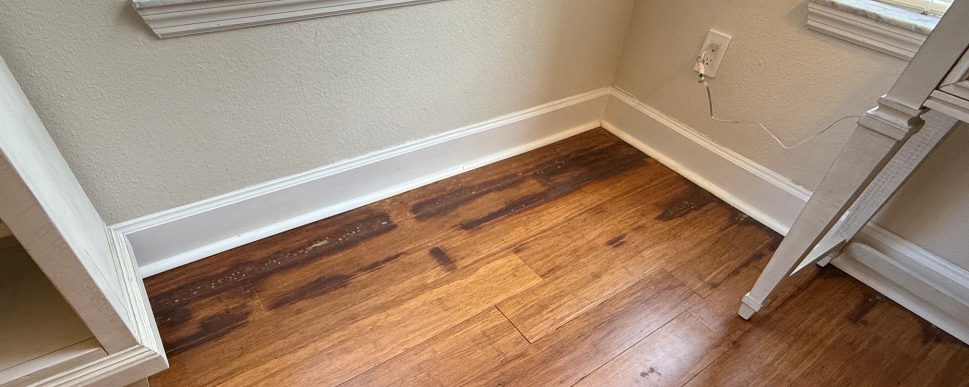 I’m sorry to hear about the damage to your condo. Beware of the hidden damage under the exposed flooring. Do I assume correctly that this is a bamboo laminate floor with an underlayment cushion material? If so, how does that cushion material dry out? Do you have mold growth between the bamboo floor and concrete slab?