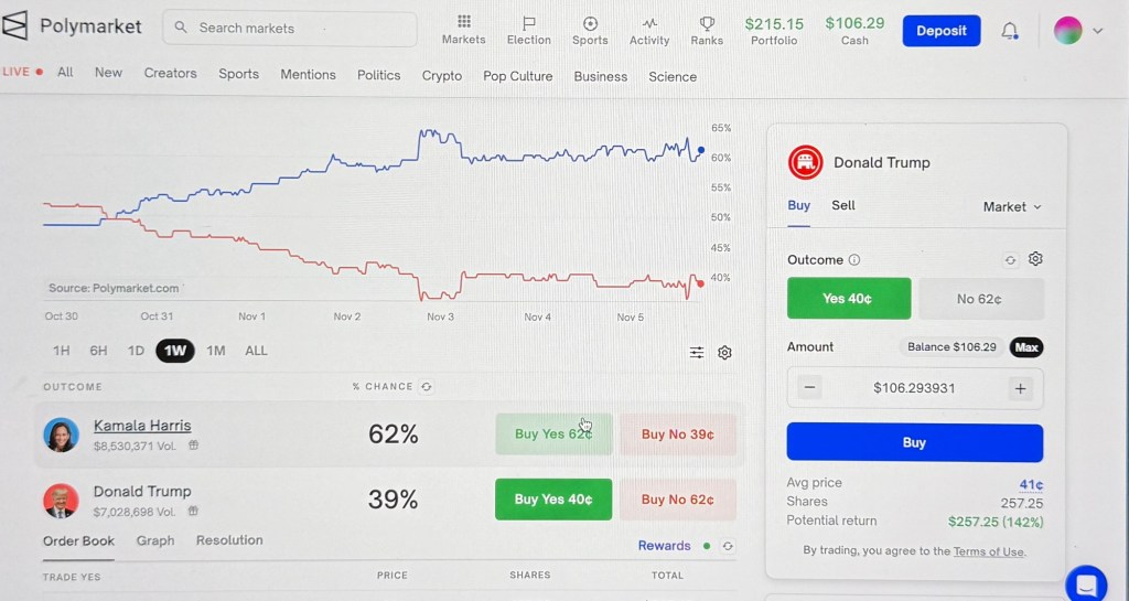 I was one of them. Although I didn’t vote for Trump or Harris myself (I’m a kooky third party libertarian voter), I did put a bet down on Trump to win the important swing state of Michigan. I had a buddy there who had some good reasoning on why it would happen.