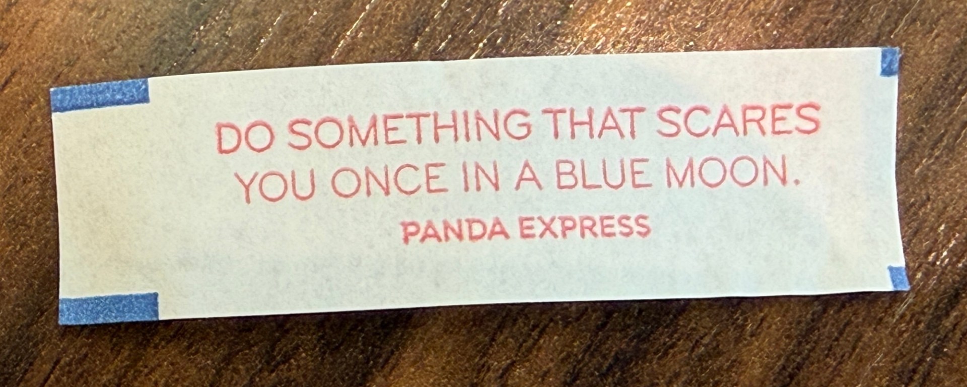 About a week ago, I got this provocative fortune in a cookie at a Chinese restaurant. It’s not often that you get interesting admonitions from Panda Express, but this one got us talking.